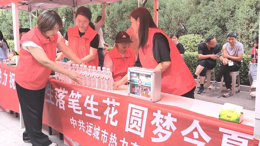 5月31日,學(xué)府名都社區(qū)發(fā)出高考志愿服務(wù)“集結(jié)哨”。公司黨委即刻激活“黨建+服務(wù)”活動(dòng)機(jī)制,以供熱應(yīng)急保障的高標(biāo)準(zhǔn)、嚴(yán)要求籌備此次活動(dòng)。僅12小時(shí),便高效完成60名黨員的召集、物資籌備以及活動(dòng)前培訓(xùn)等工作。6月7日清晨7時(shí),天光微亮,公司黨員志愿者們已在康杰中學(xué)考點(diǎn)周邊搭建起“熱力愛心服務(wù)站”的紅色帳篷。帳篷上“運(yùn)城熱力祝所有考生落筆生花 圓夢今夏”的標(biāo)語格外醒目,與黨員們身上的紅色志愿服務(wù)馬甲相互輝映,成為考場外一道溫暖的風(fēng)景線,F(xiàn)場精心設(shè)置“物資保障區(qū)”“家長休息區(qū)”,準(zhǔn)備了1500瓶礦泉水、20套板凳以及防暑藥品,每一處細(xì)節(jié)都承載著對(duì)考生和家長的深切關(guān)懷。