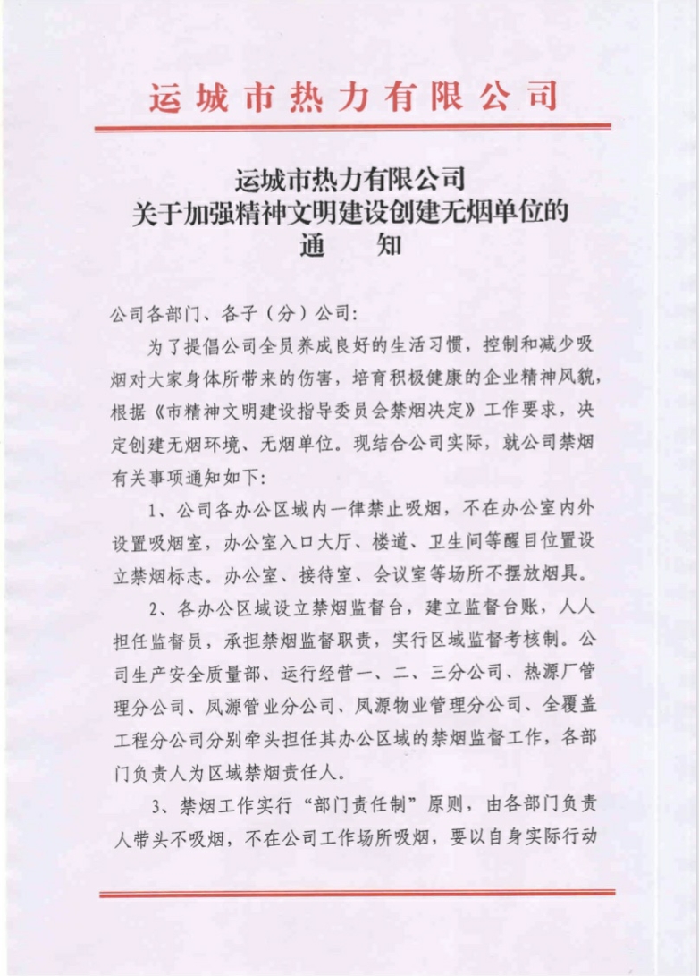 關(guān)于加強(qiáng)精神文明建設(shè)創(chuàng)建無煙單位的通知